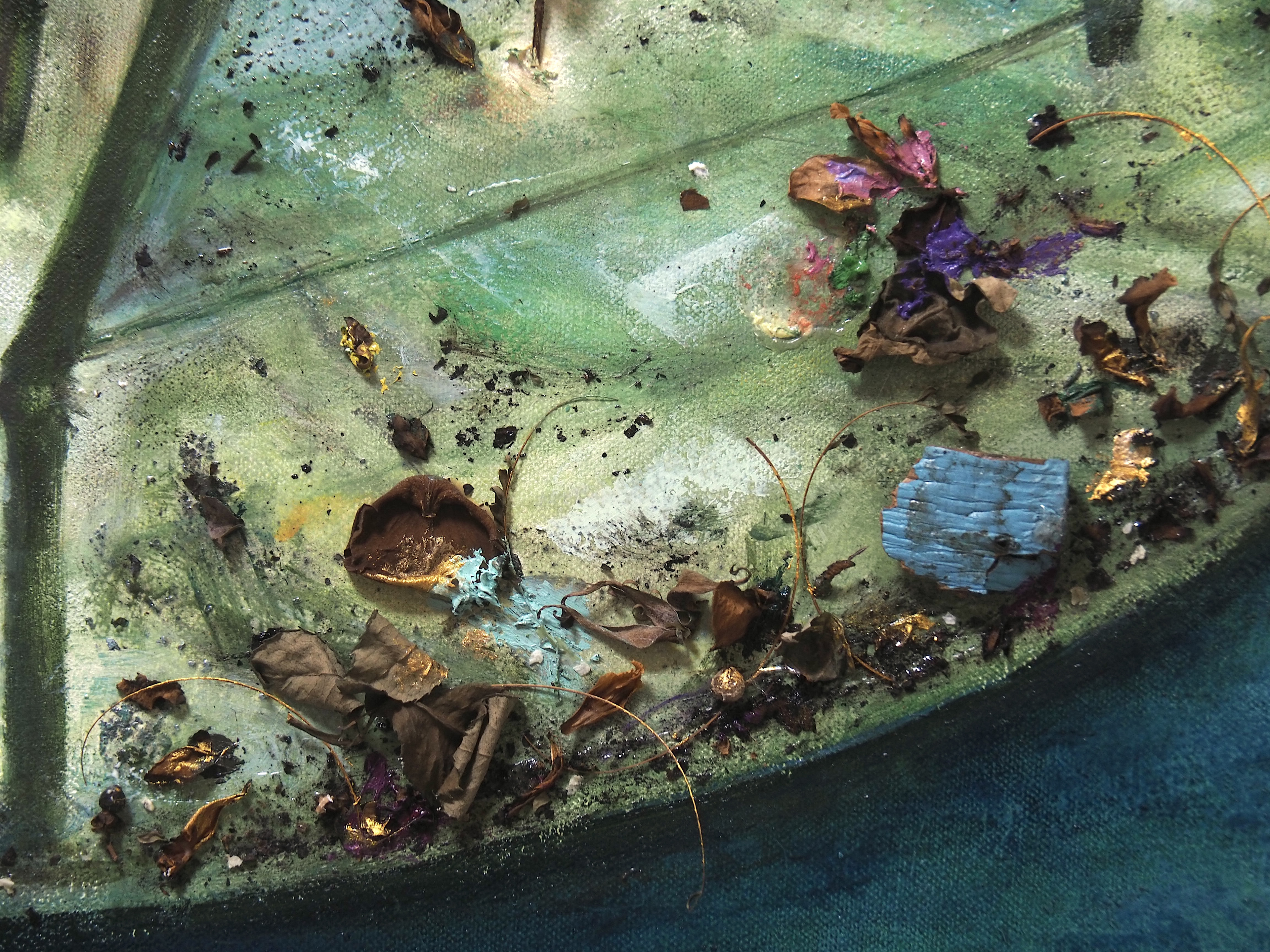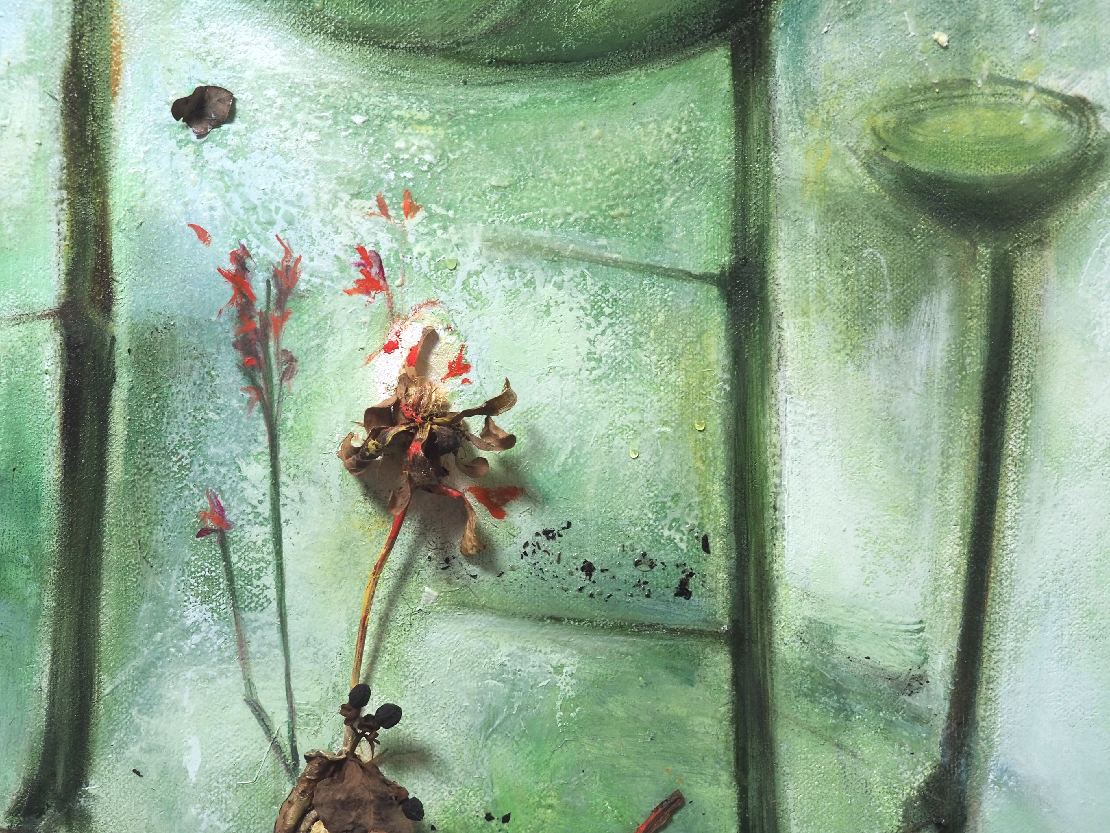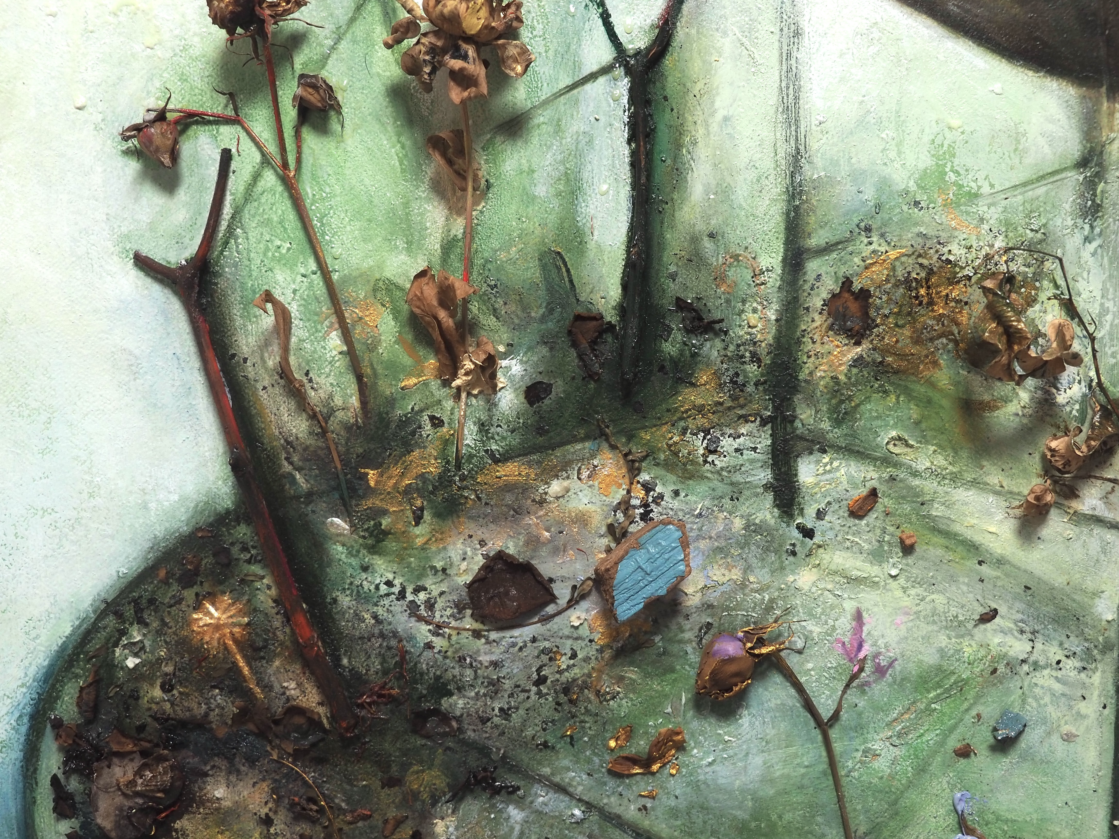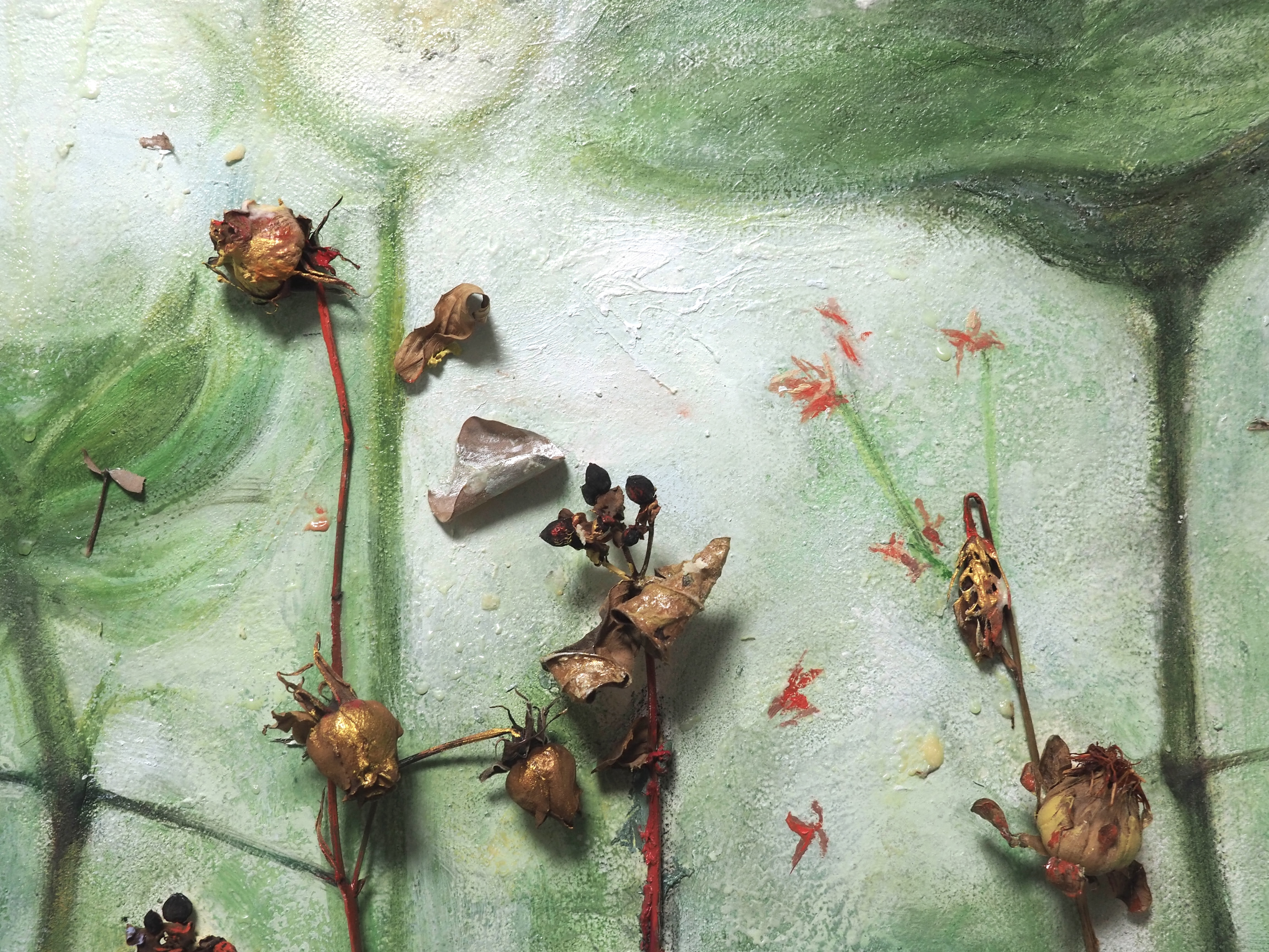 The envisioned lotus pool embodies the five immortal elements: Metal, Wood, Water, Fire, and Earth that constitute the universe, where the withered and blossoming elements illustrate the cyclical nature of existence, reflecting the caprices of life.