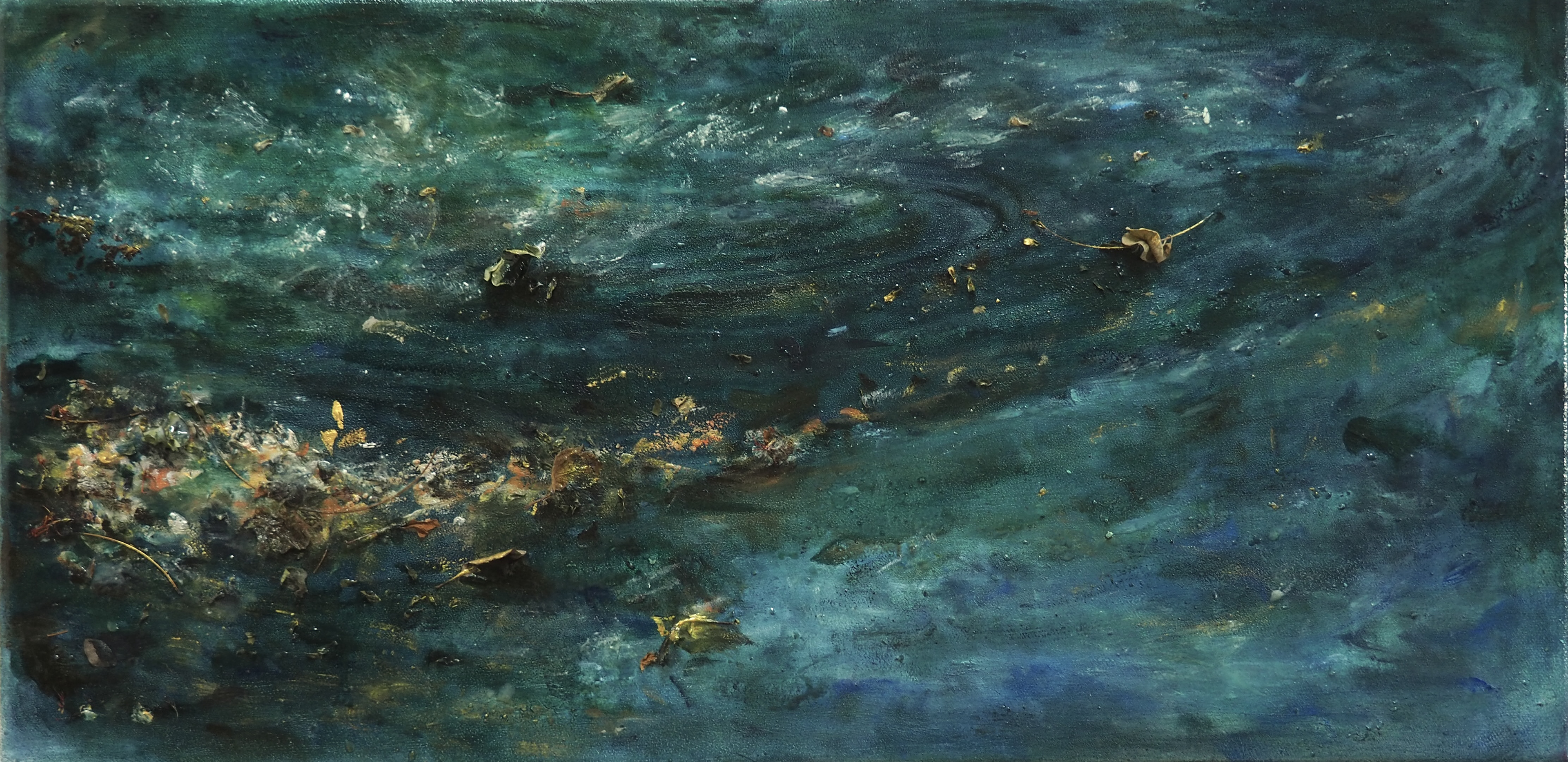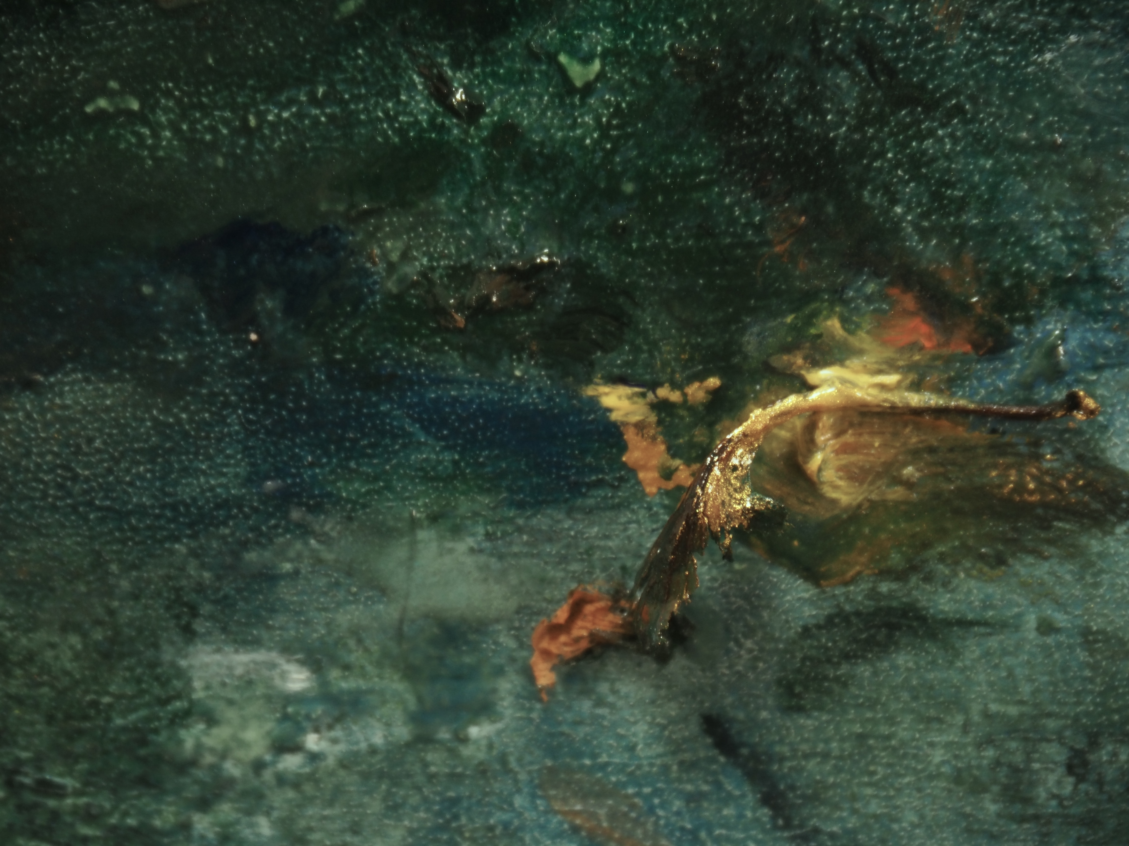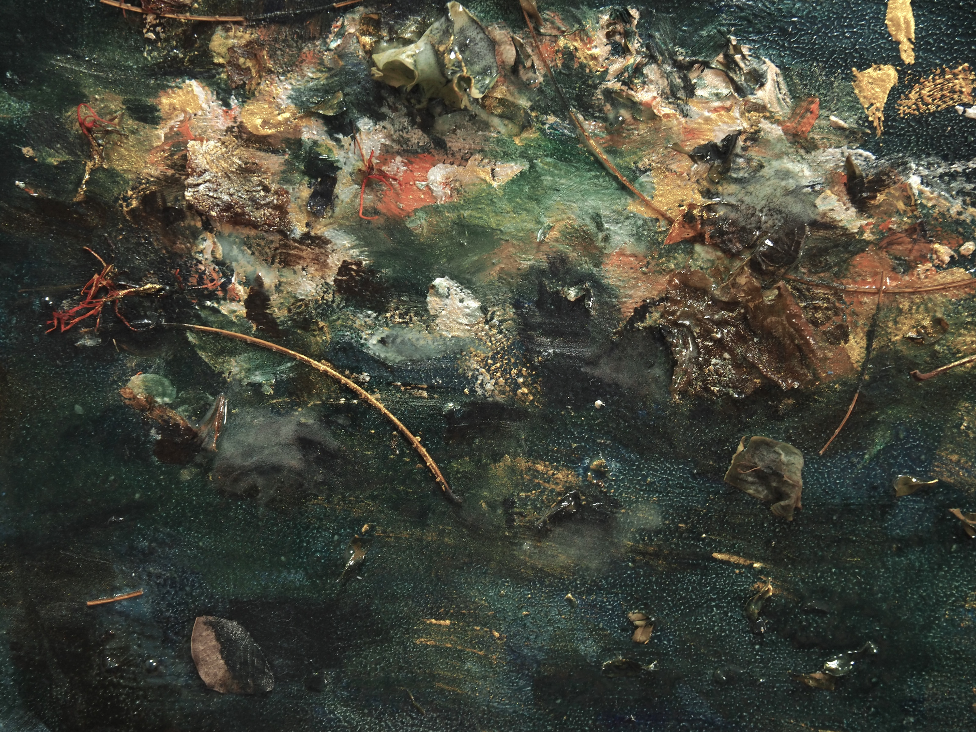 Alkyd resin, dried leaves & flowers, strontium aluminate, and oil on canvas